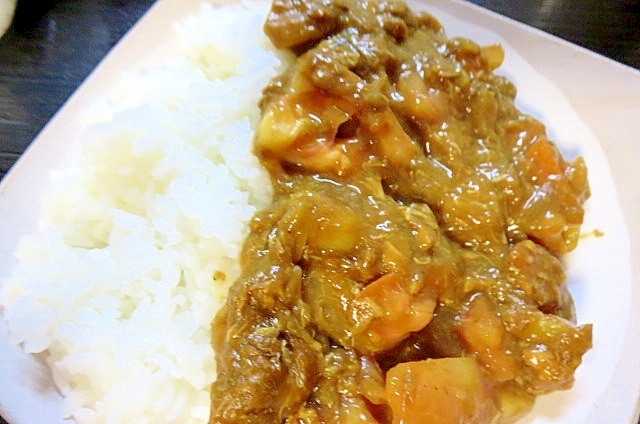サバ缶にトマト缶 カレールウを電子レンジで5分 サバ缶とトマトのカレー にハマりました Yuu メシ通 ホットペッパーグルメ