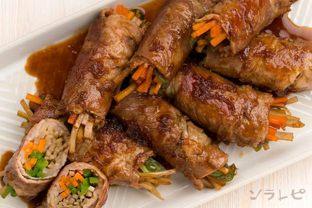 食物繊維たっぷりごぼうたっぷり野菜の肉巻きのレシピ ソラレピ