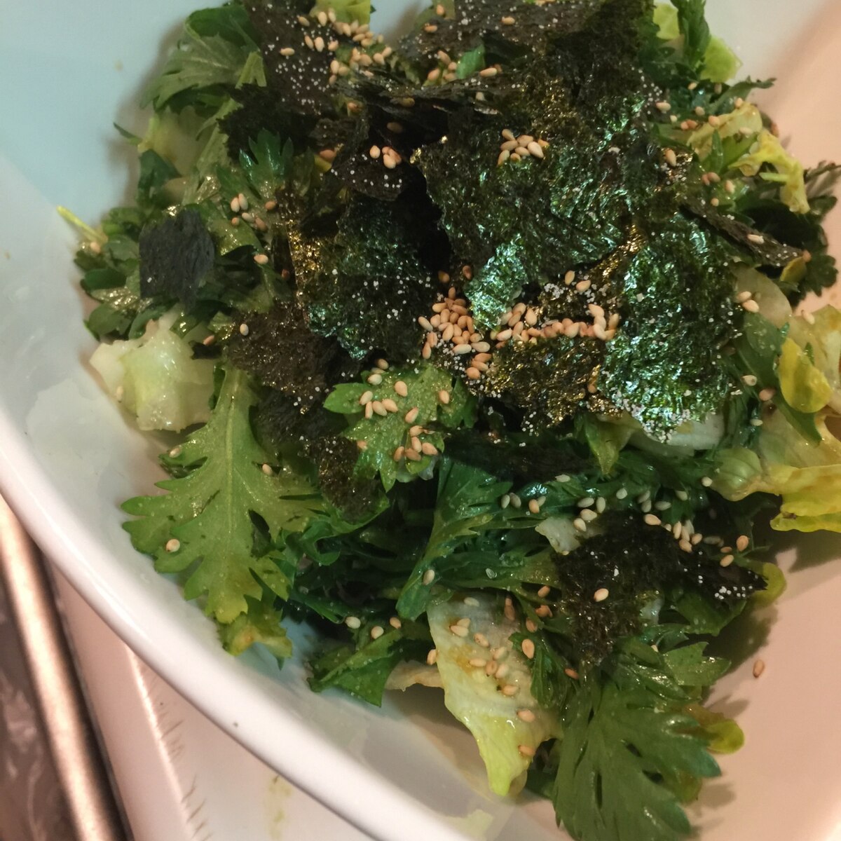 超簡単 春菊と海苔のサラダ 鉄板です By South Cats レシピ レシピ 春菊 海苔