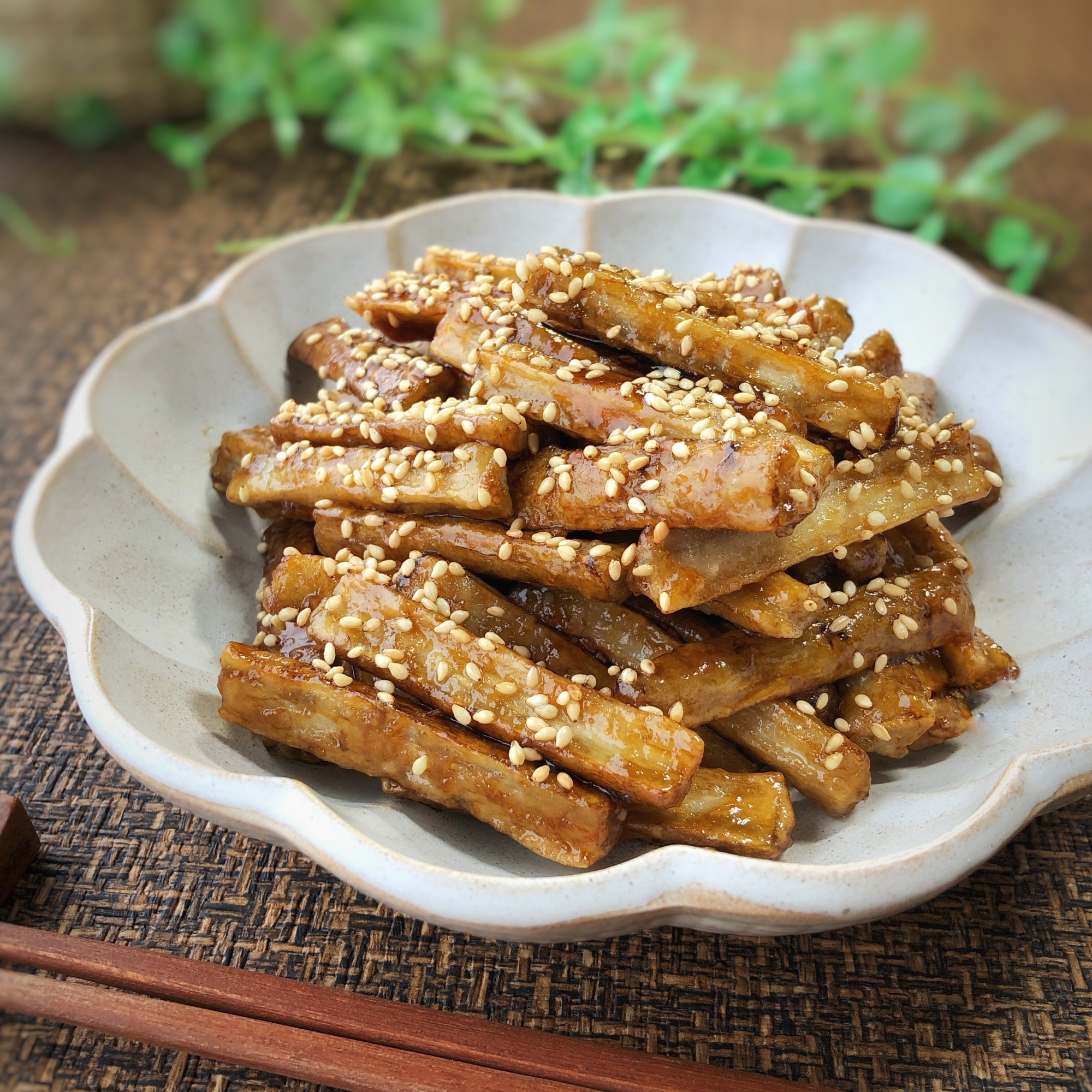 お箸がすすむ やみつき甘辛揚げごぼう フードコーディネーターによる クッキングアートサイト美膳